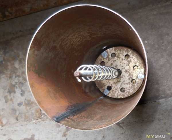 - Π Π½ΠΈΠΆΠ½Π΅ΠΉ ΡΠ°ΡΡΠΈ ΠΊΠΎΡΠΏΡΡΠ° (Π²ΡΡΠ΅ ΠΌΠ΅ΡΡΠ° ΠΊΡΠ΅ΠΏΠ»Π΅Π½ΠΈΡ ΡΡΠ΅ΠΊΠΈ) ΠΏΡΠΈΠ²Π°ΡΠΈΡΡ ΠΊΡΡΠΎΠΊ ΠΊΡΡΠ³Π»ΠΎΠΉ ΡΡΡΠ±Ρ Π΄Π»ΠΈΠ½ΠΎΠΉ 10-15 ΡΠΌ.