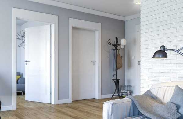 Популярный в последние годы скандинавский стиль характеризуется белой основой, поэтому подходящим вариантом станут двери белого цвета или дымчато-серого.
