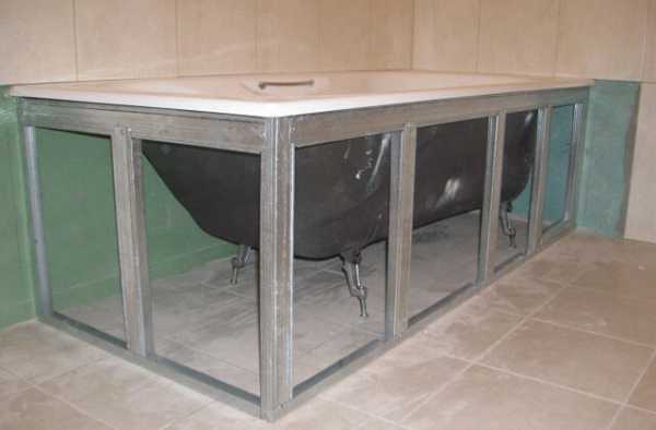 Перед началом монтажа большинства моделей необходимо собрать каркас вдоль периметра ванны. Его чаще всего изготавливают из алюминиевых профилей и гораздо реже из деревянных брусков. До того, как установить для ванны экран, сделанный из легкого пластика, каркас делать не нужно, поскольку его крепят непосредственно к бортику сантехники.