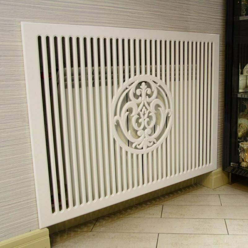 Для того, чтобы скрыть батареи и избавиться от изъянов в декоре жилого помещения, было изобретено уникальное и вместе с тем простое решение в виде экрана (решётки) на батарею.