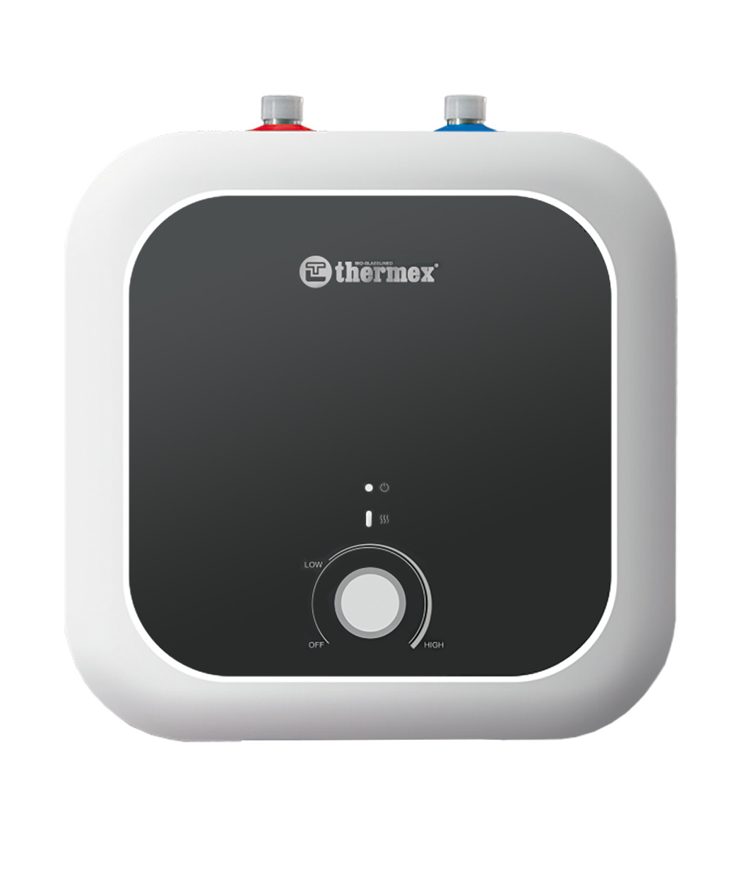 Это обычный накопительный водонагреватель. Он состоит из изолированного резервуара, в котором вода нагревается электричеством, а затем хранится до тех пор, пока она не понадобится.