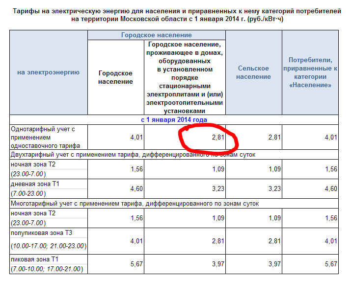- для проживающих в домах, оснащенных согласно правилам электроотопительными устройствами, цена составляла: