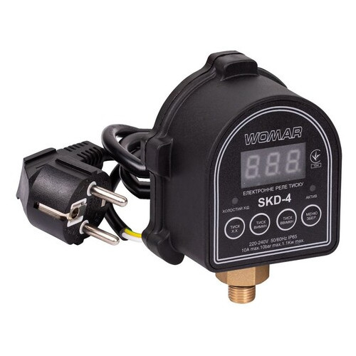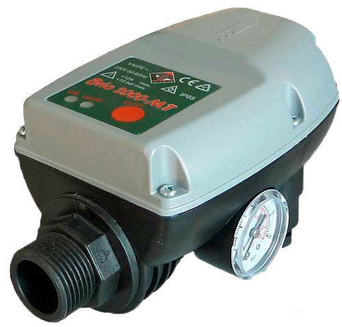 Электронное реле, является полноценным устройством управления работой насоса. Прибор включает в себя элемент плавного запуска, защиту срабатывания сухого хода, а также настройку верхнего и нижнего порога включения насоса в режиме эксплуатации. Из преимуществ перед механическим реле, можно выделить лишь меньшие габариты электронного прибора, а также принцип регулировки. Регулировочные болты расположены на корпусе электронного реле и имеют маркировку величины показателей.