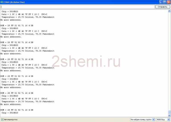 Цифровой датчик температуры DS18B20, который представляет собой трехвыводную микросхему, позволяет с высокой точностью до 0,5 градуса получать температуру с множеством параллельно работающих датчиков. В этом датчике широкий интервал температур от -55 до +125 градусов. Основной его недостаток – медлительность. Вычисления с максимальной точностью он делает за 750 мс. Ввиду инерционности корпуса датчика температуры опрашивать его нет никакого смысла.