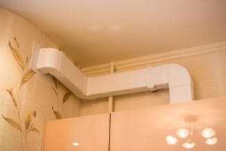 - Системы прямоугольного сечения удобно прятать за кухонные шкафы. Кроме того, воздуховоды данной конфигурации выпускаются в виде отдельных секций, так что вы можете собрать из них воздуховод любой нужной вам длины.