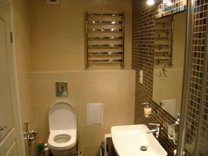 Осложняется отделка маленькой площадью помещения, спецификой за счет выводов коммуникаций, выбором отделочных материалов.