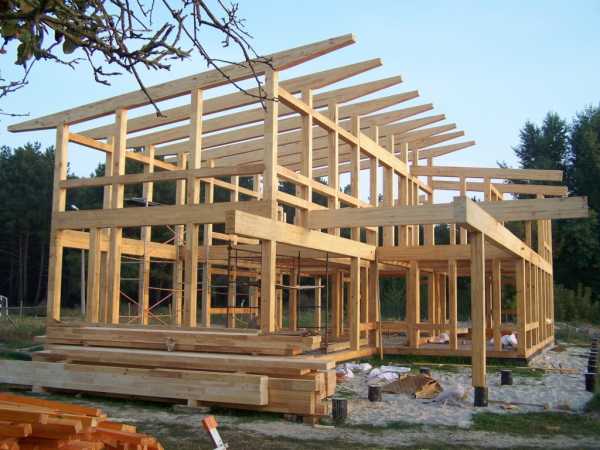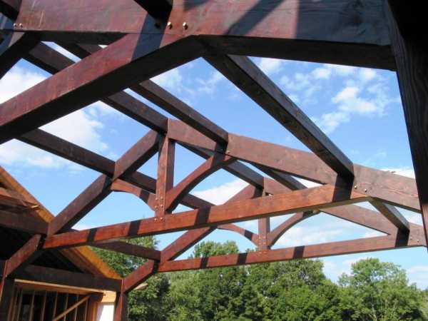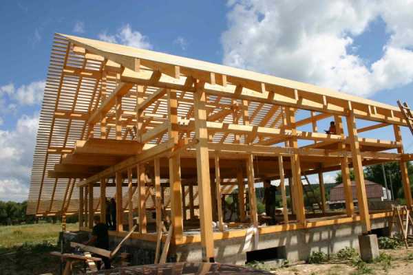 Угловые элементы каркаса укрепляются раскосами. После всех этапов приступают к кровельным работам.