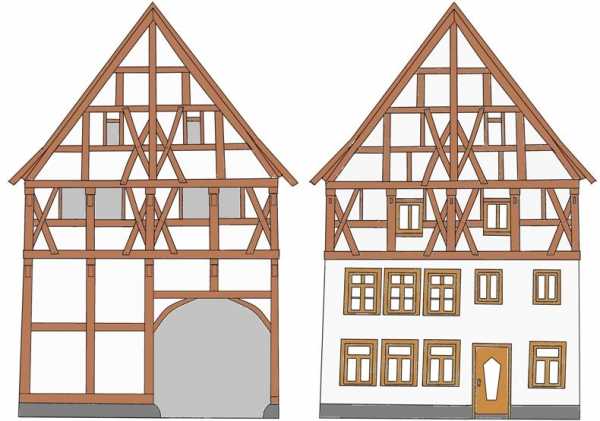 С начала XV века в Германии стали возводить здания, несущей основой в которых были секции из деревянных балок темного цвета, соединенных под определенными углами.