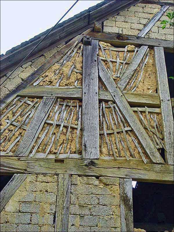 Корабельных дел мастера, свое умение, перенесли на дома, то есть сначала возводили каркас дома, а уже потом заполняли его иногда тем, что было под рукой или даже под ногами. В ход шла глина, перемешанная с соломой, а иногда и с навозом. Вся эта смесь наносилась на решетку из сплетенных веток, которые были вставлены между балками.