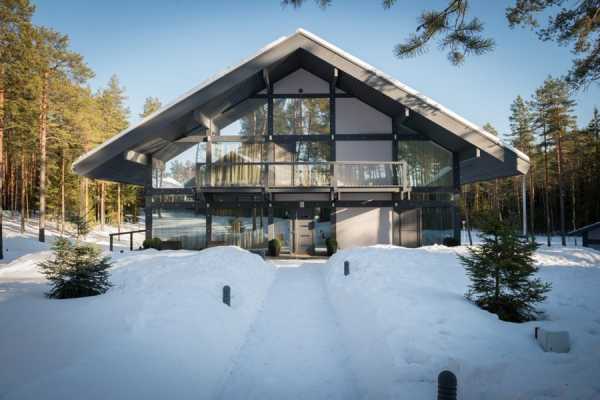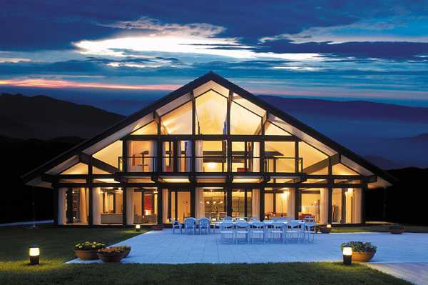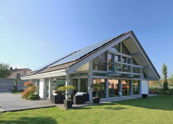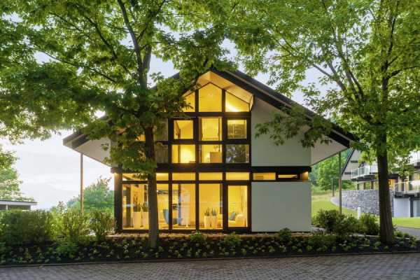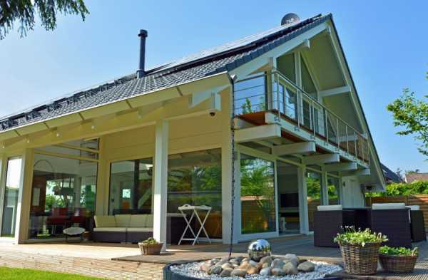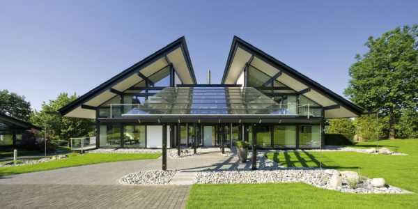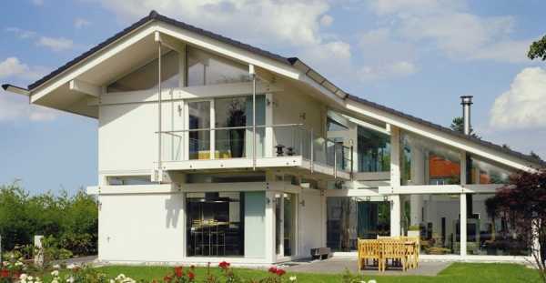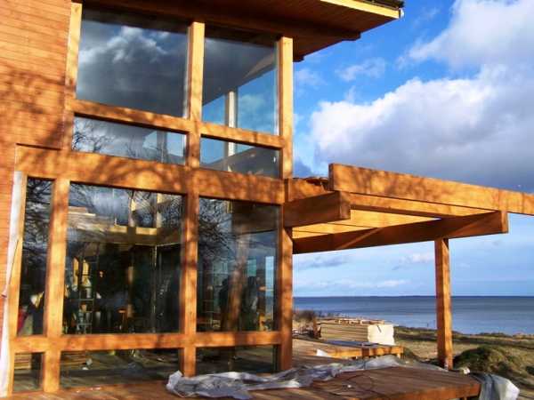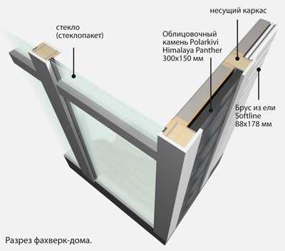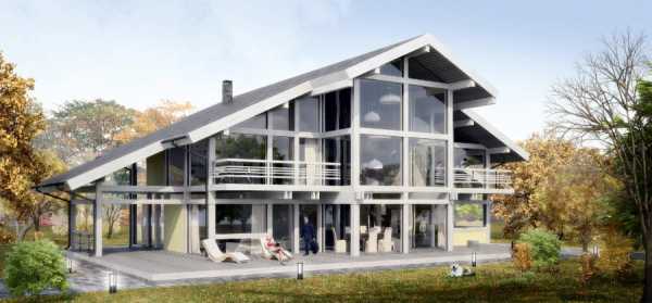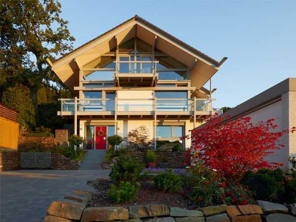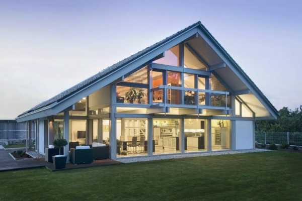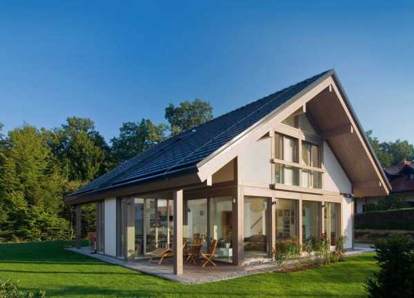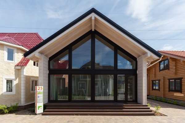 Панорамное остекление фахверкового дома является неотъемлемой частью стиля, оно просто напрашивается. Окно частного дома во всю стену — непривычное явление на постсоветском пространстве, много внимания уделяется описанию выгод и преимуществ.
