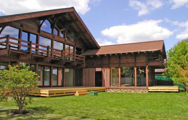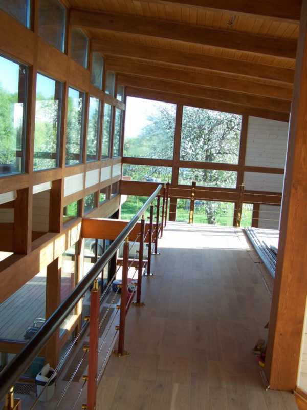 Клеёный брус, который заменил цельные бревна, намного прочнее и крепче, балки из этого материала нуждаются в меньшем числе опор. Наполнители межбалочных пространств не тяжелые кирпич и глина, как в старину, а легкие панели, обладающие всеми необходимыми прочностными, изоляционными и энергосберегающими характеристиками. Отпала необходимость в глубоком и основательном фундаменте.