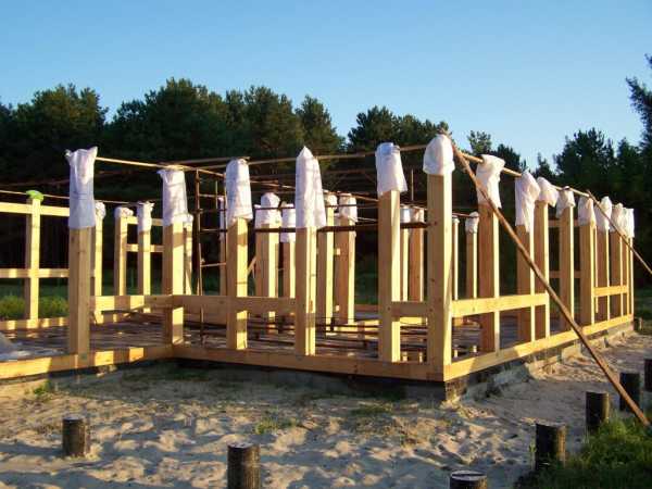 Необходимо на основание установить гидроизоляцию, а затем бруски нижней обвязки, которая закрепляется анкерами.