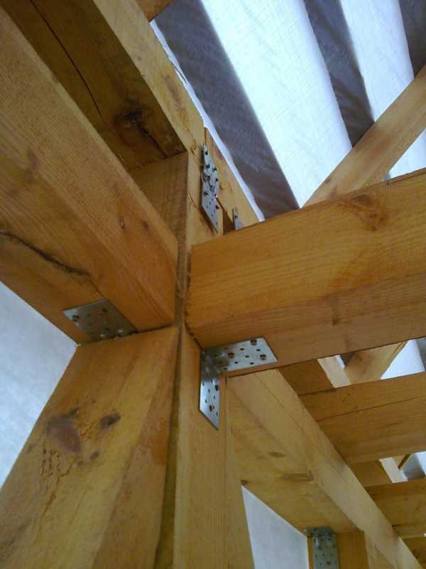 Важно при сборке каркаса проследить за соединением деталей, дополнительно закрепить элементы скобами и уголками.
