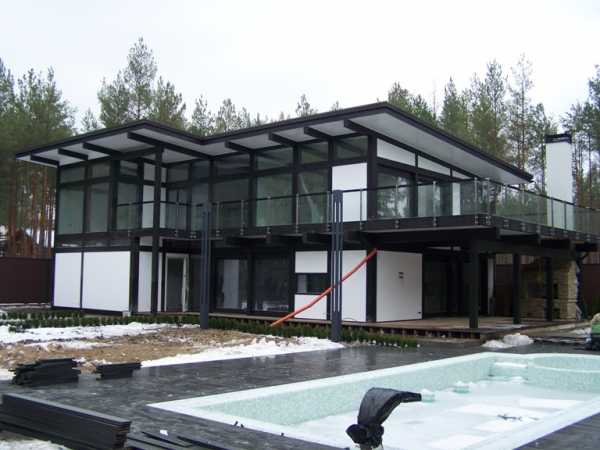 Затем следуют заполнение проемов наружных стен и внутренних перегородок, настилы полов и потолков. Кровля, двери, окна, монтаж отопления и коммуникаций, отделочные работы, покраска — и процесс закончен. Стильный современный дом готов в короткие сроки.