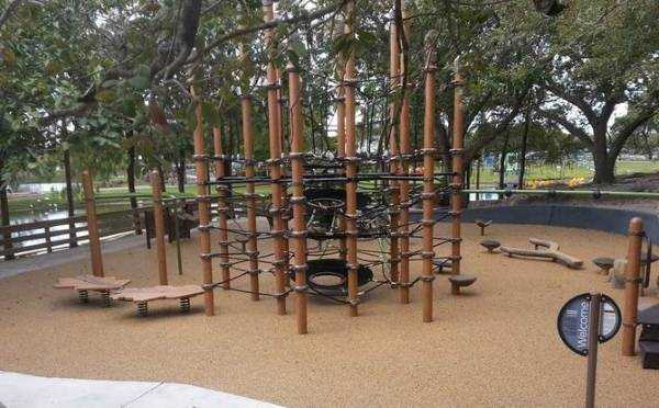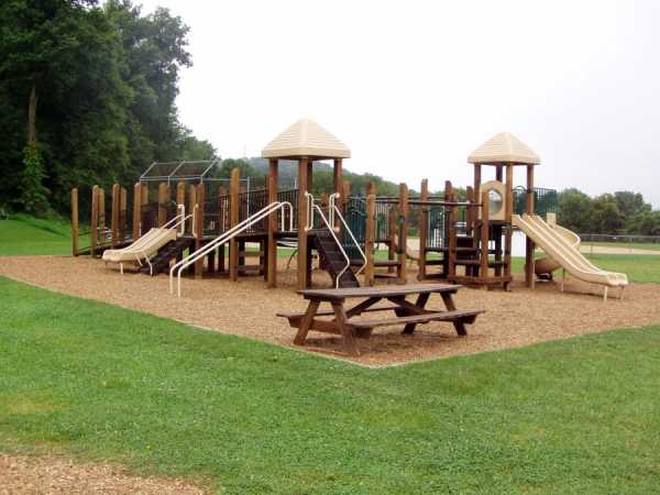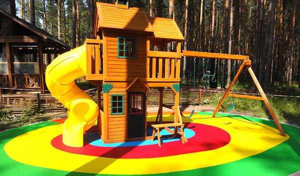 Задумайтесь о покрытии. Необходимо подобрать материал, который максимально смягчит падение ребенка. Ни в коем случае нельзя останавливать выбор на кирпиче или плитке.