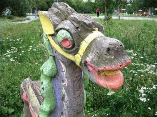 При сооружении горки иногда приходится проявить изобретательность. Вот как можно использовать высокий пень