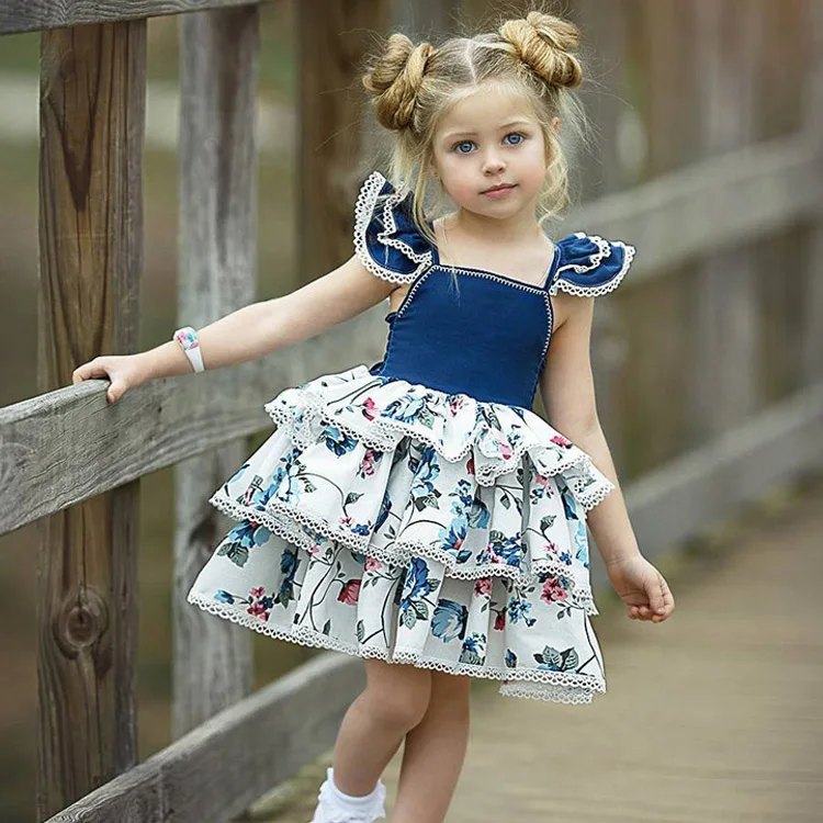 Маленькая девочка мечтает о подарке. ребенок в голубом платье. портрет очаровательного маленького ребенка на открытом воздухе.