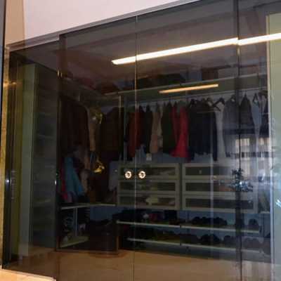 - Стеклянные и зеркальные двери для гардеробной комнаты изготавливаются из упрочненного стекла и зеркал. Такие двери можно устанавливать даже в доме, где есть маленькие дети, так как они полностью безопасны. На внутренней стороне полотна клеится специальная пленка, которая не дает осколкам разлетаться по комнате в случае разбивания. Стекло и зеркала — универсальный материал для отделки раздвижных дверей.