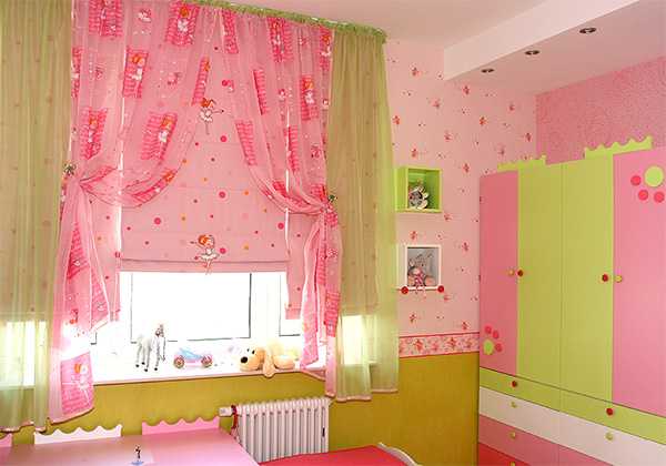 Нежные розовые занавески в спальне девочки