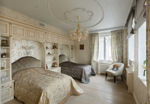 Классический вариант оформления включает характерные элементы: потолочную лепнину, паркет, хрустальную люстру как основной источник, пастельную палитру для стен, мебели, текстиля. Классические мебельные гарнитуры изготавливают из натуральной древесины, украшают патиной и инкрустацией. Выбирая дизайн детской комнаты классический, желательно соблюдать меру, чтобы она меньше всего напоминала музей.