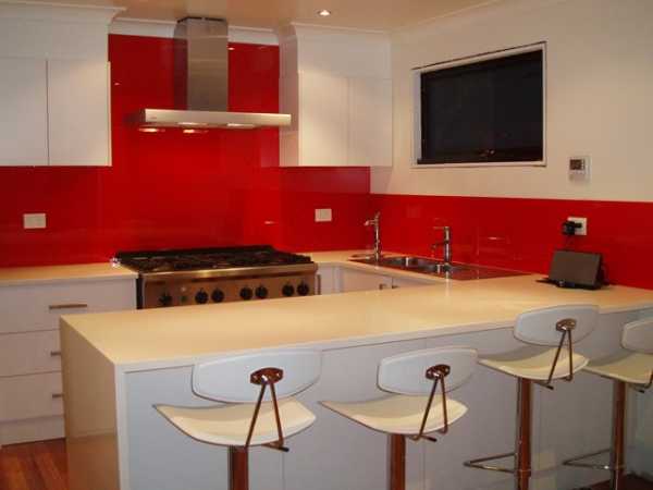 Современное дизайнерское решение может быть подчеркнуто при помощи стеклянных панелей. Это один из оптимальных и практичных вариантов обработки стен на кухне.