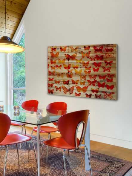 Такой способ однозначно внесет в комнату атмосферу уюта и подчеркнет функциональную принадлежность данного помещения. Кроме того, здесь смело можно дать волю фантазии, экспериментировать и даже создавать шедевры своим руками. Но для того чтобы подобные аксессуары не утратили своего первоначального вида и не загрязнились – вешать их нужно на стены не рабочей, а обеденной зоны.