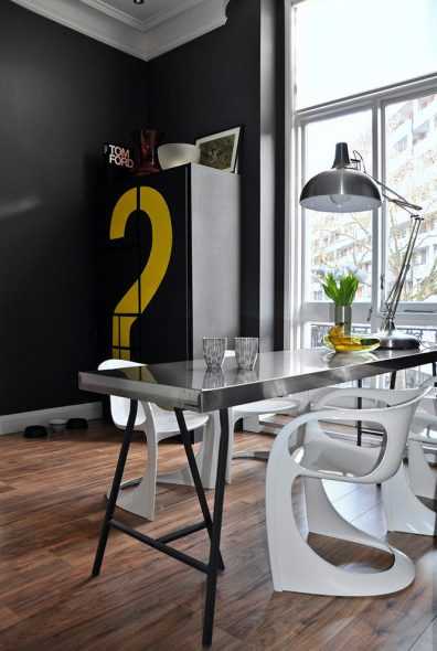 - Есть мнение, что белый цвет способствует перееданию, а черный, наоборот, снижает аппетит, поэтому часто в интерьере кухни их совмещают.
