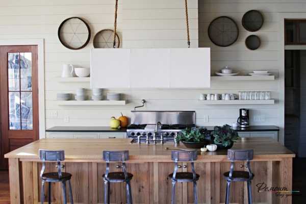 Открытые стеллажи приветствуются на любом пустом пространстве, в том числе и на стенах кухни. Они являются незаменимым местом для хранения кухонной посуды или другой хозяйственной утвари, которая всегда должна быть «под рукой».