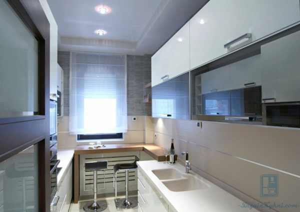 Светлый потолок не отвлекает на себя внимание и даёт кухне дополнительный объём.Какую планировку выбрать для узкой кухни