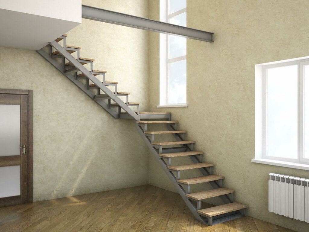 Для подобного конструктивного решения роль опоры лестницы выполняет несущая стена.