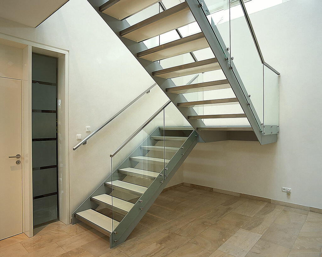 К ней фиксируют ступени, используя болты (больцы). Получающаяся композиция выглядит легкой, невесомой и хрупкой, хотя на самом деле она надежная и прочная, выдерживает нагрузку свыше тонны.