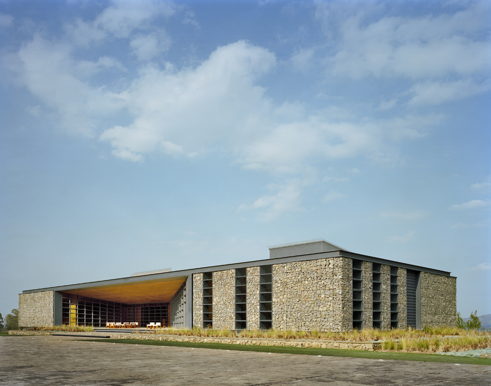 Parque Humano спроектировал очень интересный дом в Морелии, Мексика.Здание задумано как однородная каменная стена с фасадами стен из габионов. Огромный проем был спроектирован для обрамления панорамы холма.