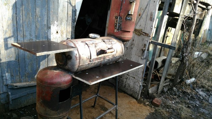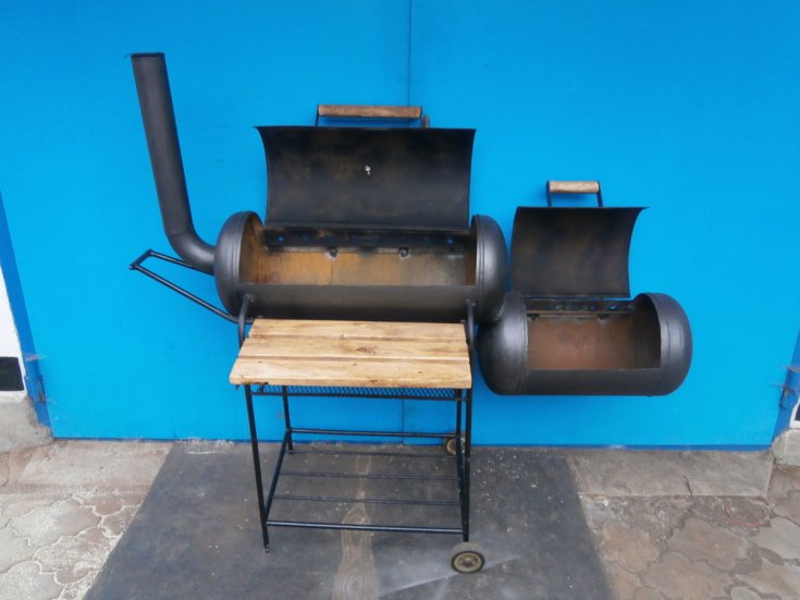 Более сложно сделать коптильню и смокер, но труд окажется полезным. В коптильне нужно соорудить топку, чего нет в обычном мангале. Важно соблюсти герметичность изделия. Чтобы соорудить такую разновидность можно приварить к первой ёмкости другую и обустроить дымоход.