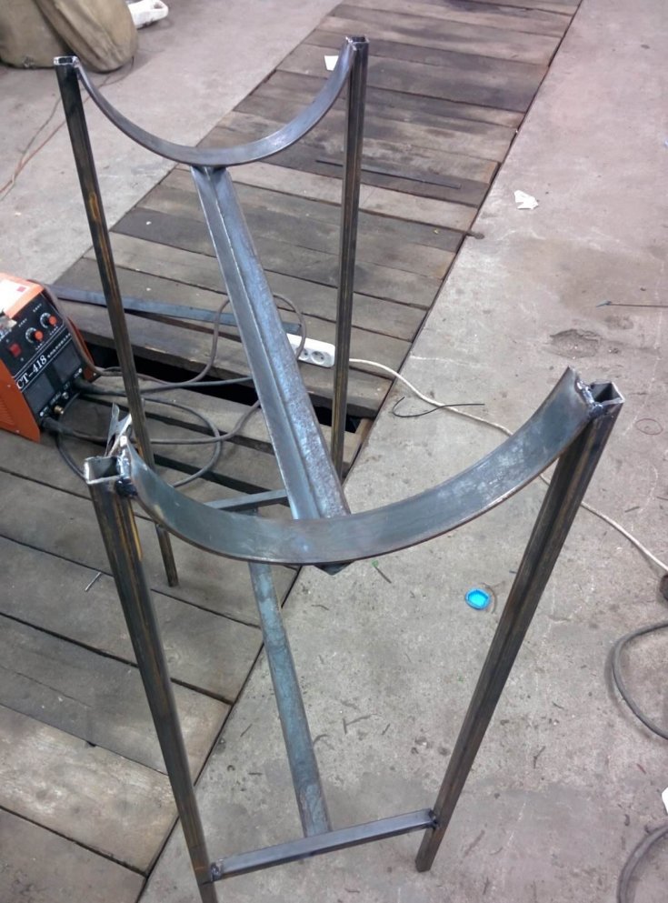 33. Свариваем конструкцию, как показано на фото. Сварные швы зачищаем. Чтобы баллон не шевелился, к нему можно приварить пластины.