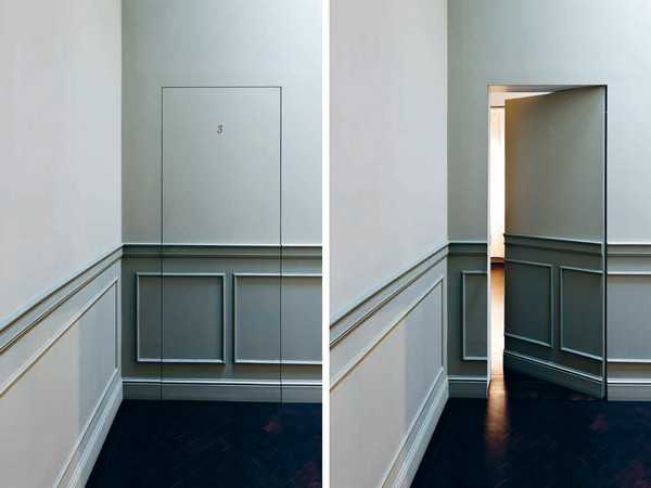 И входные, и межкомнатные распашные двери отлично выглядят – это универсальное решение, которое можно удачно вписать в любые типы интерьеров. Сегодня очень модны двери-невидимки – на фото видно, что проем не заметен на стене, при том конструкция дверей все та же распашная.