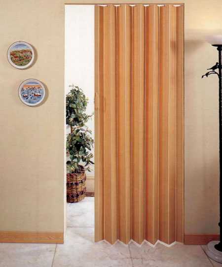 Выбор материала также не доставит никаких трудностей, поскольку для производства дверей, как правило, используется либо дерево, либо пластик. Пластиковая дверь гармошка менее надежна и долговечна, чем деревянная, однако привлекает низкой ценой. Кроме того, у пластика есть и неоспоримое преимущество – он не боится влаги, и его можно устанавливать в бане, бассейне, душевой либо ванной комнате.