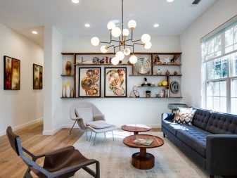 По мере возможности старайтесь добиться квадратного контура помещения, это намного привлекательнее, чем любые «оригинальные» формы и позволяет разнообразить дизайнерский подход. Уйти от ощущения прямоугольника помогают геометрические приемы дизайна. В квартирах типа «студия» рекреационная и обеденная зоны совмещаются обязательно, порой даже организуется раскладное место для сна. В проходной гостиной стоит использовать внутренние перегородки, иначе она не будет казаться уютной и приятной частью дома.