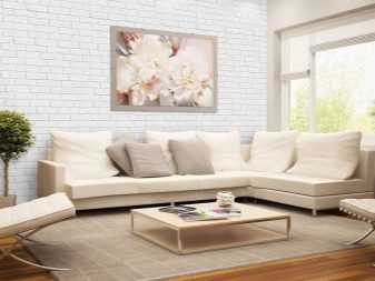 - Гостиные в белом цвете — старомодны и похожи скорее на операционную комнату больницы. Эта окраска должна вводиться умеренно и только как единичные акценты. Лучше остановиться на совмещаемом со многими тональностями бежевом или на приятном эмоционально персиковом цвете. А вот коричневую краску, как и белую, применяйте дозировано, чтобы гарнитур и стены не слились в один неразличимый комок.