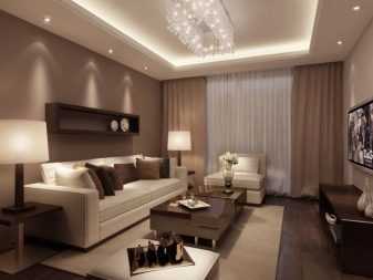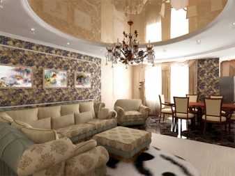 Как и в любом другом помещении, ремонтируют гостиную, начиная с потолка.