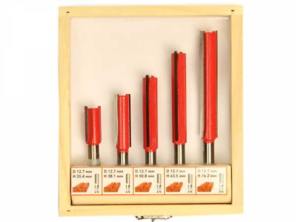 - пятый набор имеет некую схожесть с четвертым, но имеет в своем составе 20 фрез усиленной конструкции с широким разнообразием характеристик и добавлением торцевой пазовой фрезы, имеющей ширину 9,5 мм и диаметр 32 мм. Набор также предназначен для профессиональных мастеров.