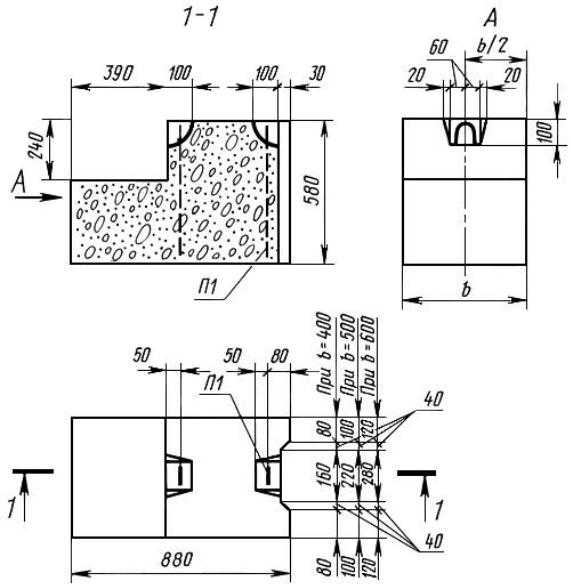 Примечание. Допускается изготовление и применение блоков длиной 780 мм (доборных), принятых в утвержденных до 01.01.78 типовых проектах зданий, на время действия этих проектов.