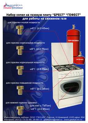 Для правильной настройки газовой плиты надо просто заменить жиклеры на горелках на соответствующие газу пропан-бутан. В магазинах бытовой техники эти детали имеются в продаже и стоят недорого. Единственная