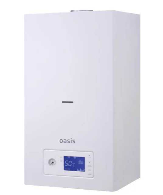 Аппарат работает от сети напряжением 220 – 380 В, стандартные размеры труб для подключения к системе водопровода и отопления. Есть дополнительная функция – бойлер для подогрева воды. Модель компактная, не выделяет токсичные газы во время работы.