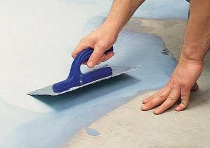 ΠΠΎΡΠ»Π΅ ΡΡΠΎΠ³ΠΎ Π³ΠΈΠ΄ΡΠΎΠΈΠ·ΠΎΠ»ΠΈΡΡΡΡΠΈΠΉ ΡΠΎΡΡΠ°Π² Π½Π°Π½ΠΎΡΡΡ Π½Π° Π²ΡΡ ΠΏΠΎΠ²Π΅ΡΡ Π½ΠΎΡΡΡ ΠΏΠΎΠ»Π° ΠΈ Π½ΡΠΆΠ½ΡΠ΅ Π·ΠΎΠ½Ρ Π½Π° ΡΡΠ΅Π½Π°Ρ , ΡΠΎΠ»ΡΠΈΠ½Π° ΡΠ»ΠΎΡ Π΄ΠΎΠ»ΠΆΠ½Π° Π±ΡΡΡ ΠΎΠΊΠΎΠ»ΠΎ 2 ΠΌΠΌ. Π§Π΅ΡΠ΅Π· 5-6 ΡΠ°ΡΠΎΠ² ΡΠ»Π΅Π΄ΡΠ΅Ρ Π½Π°Π½Π΅ΡΡΠΈ Π΅ΡΠ΅ ΠΊΠ°ΠΊ ΠΌΠΈΠ½ΠΈΠΌΡΠΌ ΠΎΠ΄ΠΈΠ½ ΡΠ»ΠΎΠΉ Π²ΠΎΠ΄ΠΎΠ·Π°ΡΠΈΡΠ½ΠΎΠΉ Π·Π°ΠΌΠ°Π·ΠΊΠΈ ΠΈ ΠΎΡΡΠ°Π²ΠΈΡΡ Π΄ΠΎ ΠΏΠΎΠ»Π½ΠΎΠ³ΠΎ Π²ΡΡΡΡ Π°Π½ΠΈΡ. ΠΠ΄ΠΈΠ½ ΡΠ»ΠΎΠΉ Π½Π°Π½ΠΎΡΠΈΡΡΡ Π½Π° Π΄ΡΡΠ³ΠΎΠΉ ΠΏΠ΅ΡΠΏΠ΅Π½Π΄ΠΈΠΊΡΠ»ΡΡΠ½ΠΎ. Π§Π΅ΡΠ΅Π· ΡΡΡΠΊΠΈ ΠΌΠΎΠΆΠ½ΠΎ Π·Π°Π½ΠΈΠΌΠ°ΡΡΡΡ ΡΠΈΡΡΠΎΠ²ΠΎΠΉ ΠΎΡΠ΄Π΅Π»ΠΊΠΎΠΉ β ΠΎΡΠ½ΠΎΠ²Π° ΠΏΠΎΠ΄ ΠΏΠ»ΠΈΡΠΊΡ Π±ΡΠ΄Π΅Ρ Π³ΠΎΡΠΎΠ²Π°.