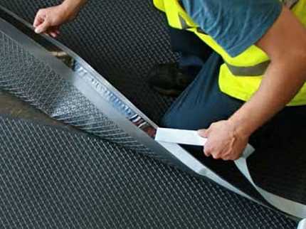 ΠΡΠΏΠΎΠ»Π½Π΅Π½ΠΈΠ΅ ΠΏΠΎΠ΄Π³ΠΎΡΠΎΠ²ΠΈΡΠ΅Π»ΡΠ½ΡΡ ΡΠ°Π±ΠΎΡ Π²Β ΠΏΠΎΠ»Π½ΠΎΠΌ ΠΎΠ±ΡΠ΅ΠΌΠ΅ β Π·Π°Π»ΠΎΠ³ Π½Π°Π΄Π΅ΠΆΠ½ΠΎΠΉ Π³ΠΈΠ΄ΡΠΎΠΈΠ·ΠΎΠ»ΡΡΠΈΠΈ. ΠΡΠ»ΠΈ ΠΈΡΠΏΠΎΠ»ΡΠ·ΡΡΡΡΡ ΡΠ°ΠΌΠΎΠΊΠ»Π΅ΡΡΠΈΠ΅ΡΡ ΠΌΠ°ΡΠ΅ΡΠΈΠ°Π»Ρ, ΡΠΎ ΡΠ°Π±ΠΎΡΠ° ΡΠ²ΠΎΠ΄ΠΈΡΡΡ ΠΊ ΠΎΡΡΠ΅Π·Π°Π½ΠΈΡ ΠΎΡ ΡΡΠ»ΠΎΠ½Π° ΠΏΠΎΠ»ΠΎΡ Π½Π΅ΠΎΠ±Ρ ΠΎΠ΄ΠΈΠΌΠΎΠΉ Π΄Π»ΠΈΠ½Ρ ΠΈ ΠΏΡΠΈΠΊΠ»Π΅ΠΈΠ²Π°Π½ΠΈΡ ΠΈΡ ΠΊ ΡΡΠ΅Π½Π΅. ΠΠ»Ρ Π½Π°Π΄Π΅ΠΆΠ½ΠΎΠ³ΠΎ ΠΊΠΎΠ½ΡΠ°ΠΊΡΠ° ΠΌΠΎΠΆΠ½ΠΎ ΠΏΡΠΎΠΊΠ°ΡΠ°ΡΡ Π²Π°Π»ΠΈΠΊΠΎΠΌ. ΠΡΠΎΠ±ΠΎΠ³ΠΎ Π²Π½ΠΈΠΌΠ°Π½ΠΈΡ ΡΡΠ΅Π±ΡΡΡ ΠΊΡΠ°Ρ. ΠΠΎΡΠ»Π΅Π΄ΡΡΡΠΈΠ΅ ΠΏΠΎΠ»ΠΎΡΡ Π½Π°ΠΊΠ»Π°Π΄ΡΠ²Π°ΡΡΡΡ Π²Π½Π°Ρ Π»Π΅ΡΡ.