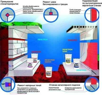 ΠΡΠΎΠΏΠΈΡΠΎΡΠ½Π°Ρ, ΠΈΠ»ΠΈ ΠΏΡΠΎΠ½ΠΈΠΊΠ°ΡΡΠ°Ρ Π³ΠΈΠ΄ΡΠΎΠΈΠ·ΠΎΠ»ΡΡΠΈΡ ΡΠΏΠΎΡΠΎΠ±Π½Π° Π·Π°ΡΠΈΡΠΈΡΡ Π±Π΅ΡΠΎΠ½ ΠΎΡ ΡΡΠ΅ΡΠΈΠ½, ΠΏΡΠΎΠ½ΠΈΠΊΠ°Π΅Ρ Π½Π° Π³Π»ΡΠ±ΠΈΠ½Ρ ΠΎΠΊΠΎΠ»ΠΎ 1,5 ΡΠΌ ΠΈ Π·Π°ΠΏΠΎΠ»Π½ΡΠ΅Ρ Π²ΡΠ΅ ΠΌΠΈΠΊΡΠΎΡΠΊΠΎΠΏΠΈΡΠ΅ΡΠΊΠΈΠ΅ ΠΏΠΎΡΡ. ΠΠ° ΡΡΠ½ΠΊΠ΅ Π΅ΡΡΡ ΠΌΠ½ΠΎΠ³ΠΎ ΡΠ°Π·Π½ΡΡ ΠΏΡΠΎΠΏΠΈΡΠΎΠΊ, ΠΎΠ΄Π½Π° ΠΈΠ· ΠΈΠ·Π²Π΅ΡΡΠ½ΡΡ β ΡΡΡ Π°Ρ ΡΠΌΠ΅ΡΡ Β«ΠΠ΅Π½Π΅ΡΡΠΎΠ½Β», ΠΊΠΎΡΠΎΡΠ°Ρ ΡΠΎΡΡΠΎΠΈΡ ΠΈΠ· ΠΊΠ²Π°ΡΡΠ΅Π²ΠΎΠ³ΠΎ ΠΌΠ΅Π»ΠΊΠΎΠ³ΠΎ ΠΏΠ΅ΡΠΊΠ°, ΡΠΏΠ΅ΡΠΈΠ°Π»ΡΠ½ΠΎΠ³ΠΎ Π±Π΅ΡΠΎΠ½Π° ΠΈ ΠΎΡΠΎΠ±ΡΡ Ρ ΠΈΠΌΠΈΡΠ΅ΡΠΊΠΈΡ Π΄ΠΎΠ±Π°Π²ΠΎΠΊ. ΠΡΠ° ΡΠΌΠ΅ΡΡ ΠΌΠΎΠΆΠ΅Ρ ΠΏΡΠΎΠ½ΠΈΠΊΠ°ΡΡ Π² Π±Π΅ΡΠΎΠ½ Π½Π° Π³Π»ΡΠ±ΠΈΠ½Ρ Π΄ΠΎ 5 ΡΠΌ, ΠΎΠ±Π΅ΡΠΏΠ΅ΡΠΈΠ²Π°Ρ Π΅Π³ΠΎ Π²Π»Π°Π³ΠΎΠ·Π°ΡΠΈΡΡ, Π΄Π°ΠΆΠ΅ Π΅ΡΠ»ΠΈ Π²ΠΎΠ΄Π° Π±ΡΠ΄Π΅Ρ ΠΏΠΎΠ΄Π°Π²Π°ΡΡΡΡ ΠΏΠΎΠ΄ Π΄Π°Π²Π»Π΅Π½ΠΈΠ΅ΠΌ. ΠΡΠΈ ΡΠ²Π»Π°ΠΆΠ½Π΅Π½ΠΈΠΈ ΠΏΡΠΎΠΏΠΈΡΠ°Π½Π½Π°Ρ ΠΏΠΎΠ²Π΅ΡΡ Π½ΠΎΡΡΡ Π΄Π°ΠΆΠ΅ Π² Π½Π΅ΠΊΠΎΡΠΎΡΡΡ ΠΌΠ΅ΡΡΠ°Ρ ΡΠΏΠΎΡΠΎΠ±Π½Π° ΠΊ ΡΠ°ΠΌΠΎΠ²ΠΎΡΡΡΠ°Π½ΠΎΠ²Π»Π΅Π½ΠΈΡ Π±Π»Π°Π³ΠΎΠ΄Π°ΡΡ ΡΠ²ΠΎΠΉΡΡΠ²Π°ΠΌ ΡΠ°ΡΡΠΈΡ, Π²Ρ ΠΎΠ΄ΡΡΠΈΡ Π² ΠΏΡΠΎΠΏΠΈΡΠΊΡ.