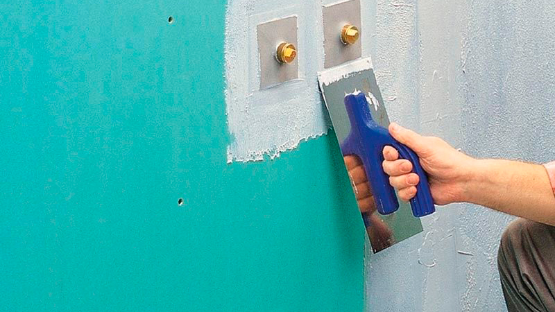 К числу традиционных материалов для гидроизоляции ванной комнаты относятся старые добрые бетонные растворы на основе цемента с модифицирующими добавками. Они представлены в виде готовых смесей — ремонтных (пломбирующих) составов либо смесей для бетонной стяжки во влажных помещениях.