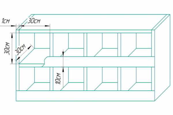 - Далее необходимо вырезать заготовки. Важно произвести точные расчеты параметров необходимых вам деталей. Прежде всего посчитайте необходимое количество ячеек. Затем умножьте получившееся число на ширину одной ячейки – она должна быть минимум 25 см. По той же формуле рассчитывается высота короба. Если птиц в вашем хозяйстве много, сделайте несколько этажей.