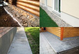 После закладки фундамента дома, по его периметру обязательно укладывается искусственное покрытие, состоящее из нескольких слоев – отмостка. Эта конструкция представляет собой гидроизолирующий барьер, который препятствует проникновению поверхностных вод к несущему основанию здания. Обычно это многослойное покрытие изготавливают по одной технологии, отличается только финишный слой, который может быть изготовлен из бетона, искусственного камня или плитки (твердое основание). Также большой популярностью пользуется отмостка из щебня (мягкое основание), которая является наиболее простым и доступным решением при обустройстве защитной ленты вокруг дома.