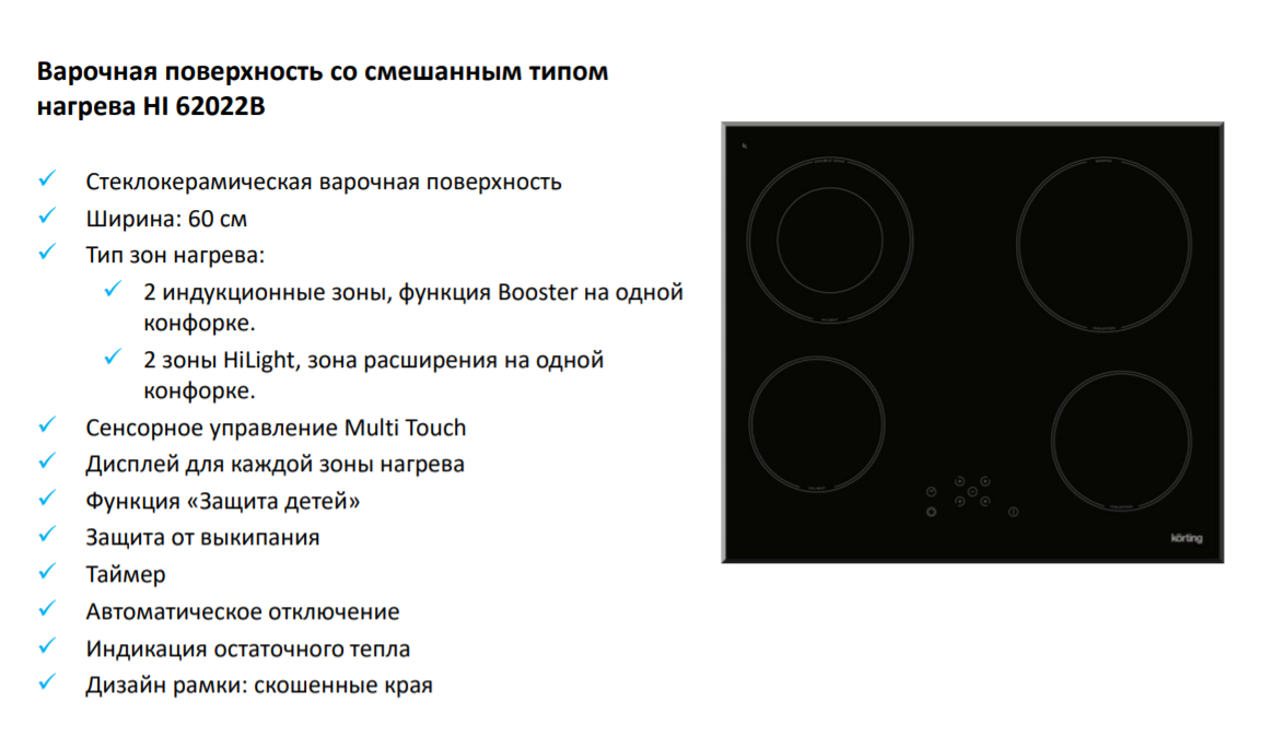 - Индикаторы показывают, горяча ли варочная панель даже в выключенном состоянии.